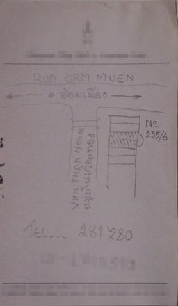 初めてVhiang Thong Houseに行った時は、行くのに通りを見ていたはずなのですが、結局場所がよく分かりませんでした。トゥクトゥクって、結構外は見にくいですしね。また、お恥ずかしい話ですが、これだけチェンマイに通っていて、チェンマイ全体の地図が頭の中で構成され出したのは、つい最近のことなのです。それまでは結構広いと思っていたチェンマイの街なのですが、今までバラバラに頭の中に存在していたチェンマイの各地が、大体結びついてきた今になると、ことのほか狭いので驚いています。例えば、タノンケーオナワラート(ナコンピン橋の方です。プリンスロイヤル校とかちょっと行くとパヤップ大等がある所です)なんていうのは、とんでもないあっちの方というイメージだったのですが、ナイトバザールからでも1キロないぐらいなのですよね。まあ、これもバイクで動かないせいだったのかもしれません。