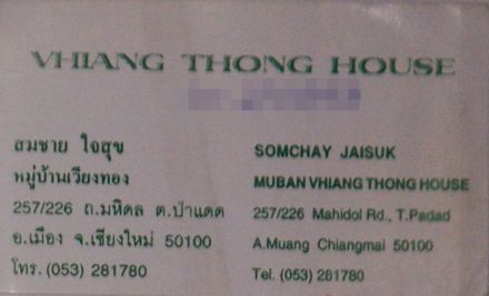 「VHIANG THONG HOUSE」の名刺(これは、移転してしばらくしてからもらったもの)